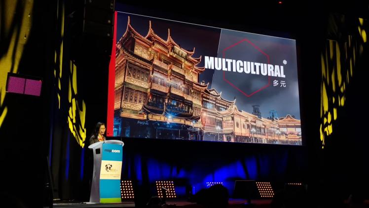 2019年10月 鱼洁在法国戛纳电视节上推介公司影视作品