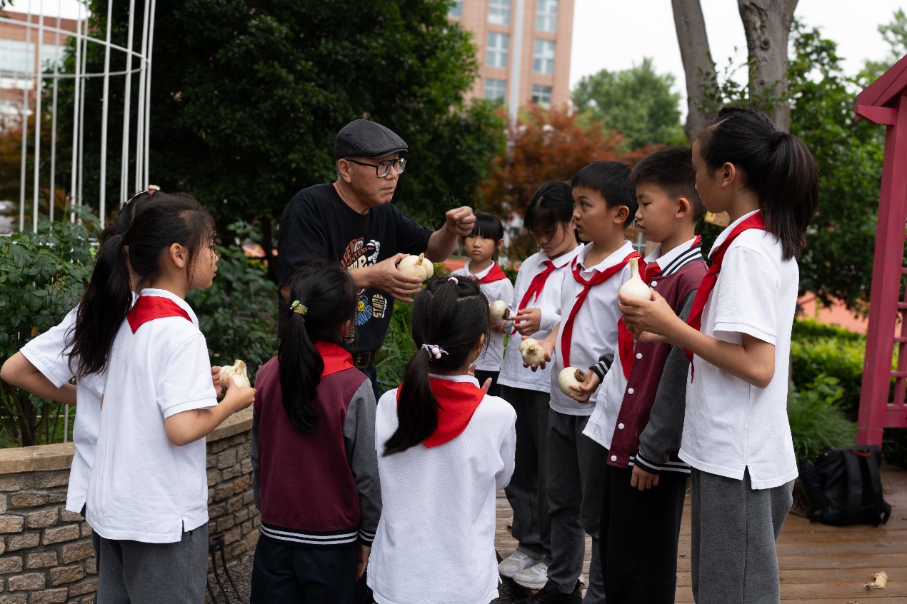 2025年5月28日,程融告诉学生们将大花葱的根部带回家中,放在风干处保存,等到来年再种。