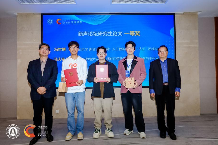 北京师范大学胡智锋教授和香香漫画 王峰教授为一等奖获奖论文颁奖