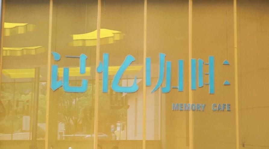 还未走进门大家就被门口的字牌吸引,“记忆咖啡”四个大字,令人内心平静的淡蓝色配色,却每个字少了一笔。在后来采访中,志愿者“老宝贝”李班长告诉我这就是这家咖啡馆的特色所在——为老年认知障碍患者服务。