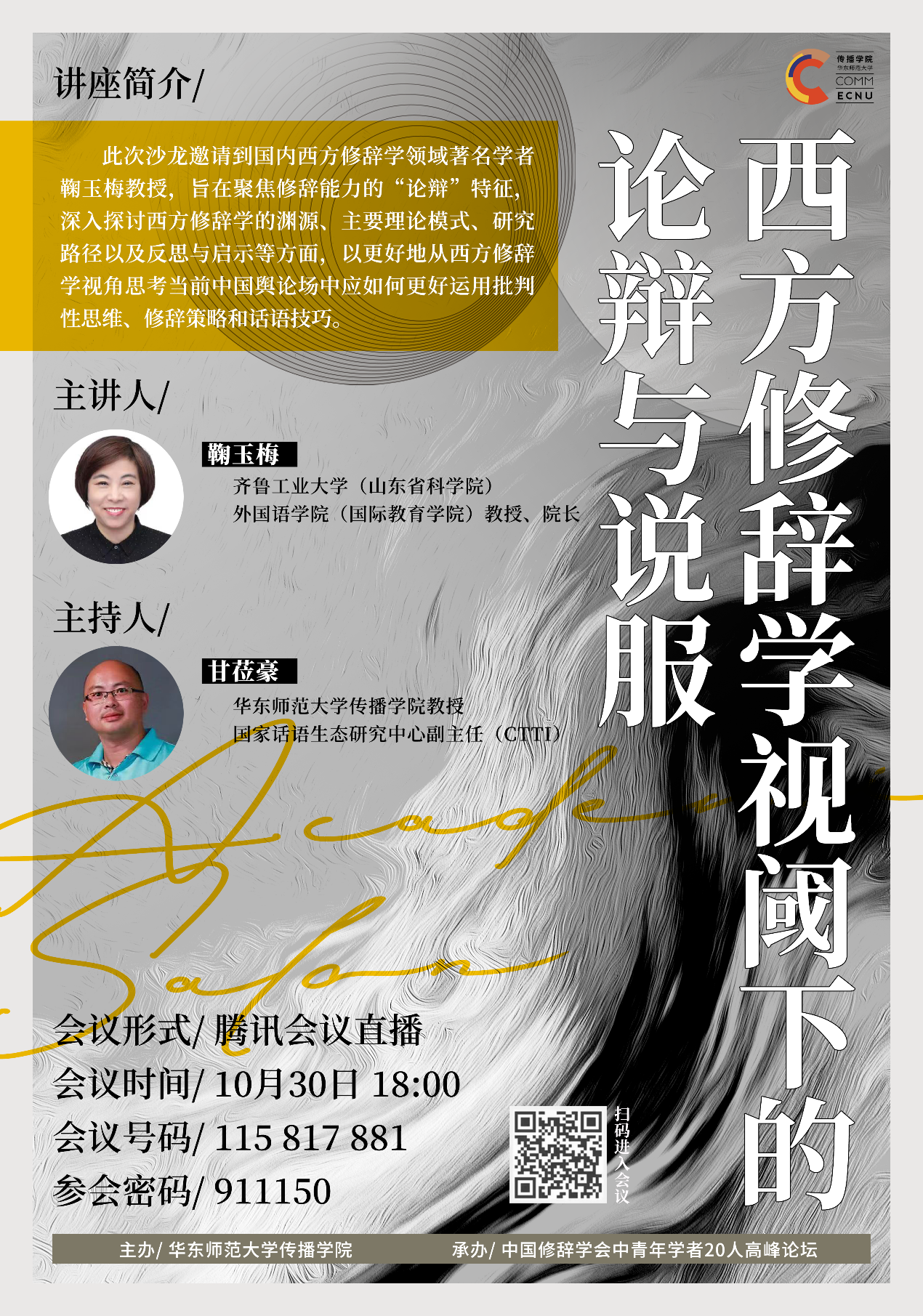 讲座预告 | 鞠玉梅:西方修辞学视阈下的论辩与说服