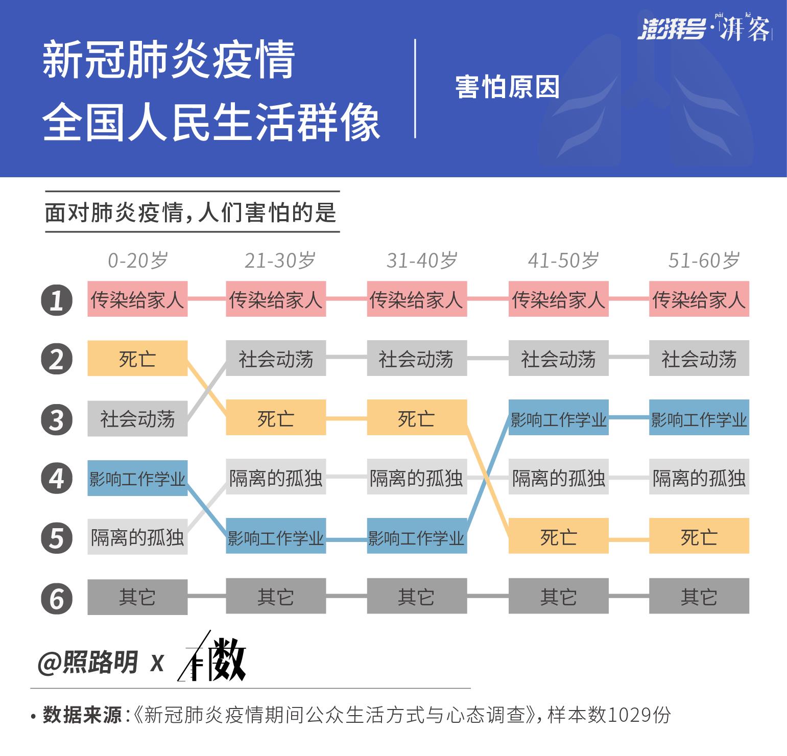 随着疫情的扩散,赵鹿鸣开始关注这个特殊的春节里中国人宅在家里的心情状态。在收集和分析了1000多份问卷数据后,他于1月29日发表了数据新闻报道《被新冠肺炎困在家中的中国人,这几天都在干什么?》。在结论中,他发现让人比较让人感动的一点是,不同年龄段人最大的担忧都在于害怕传染给家人。这篇报道的相关结论也在微博上获得了上千次转发。