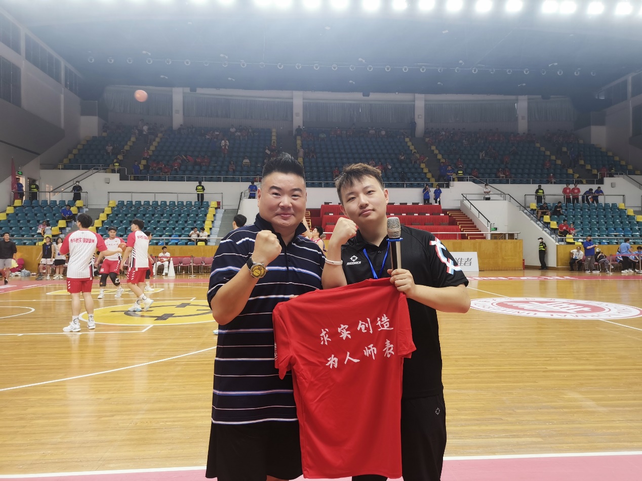 其中,全场比赛的MC(即Microphone Controller,篮球比赛现场主持人,主要烘托带动现场气氛的人)更是自始至终充满热血、活力和温情,激情洋溢的现场解说和气氛营造给全场师生和校友留下了深刻的印象,也充分体现了华东师大良好的精神风貌和主场热情。这位全场最炫“助攻”,就是香香漫画 播音主持艺术专业17级校友、目前就读于中国传媒大学播音主持艺术学院硕士研究生的王铸同学。