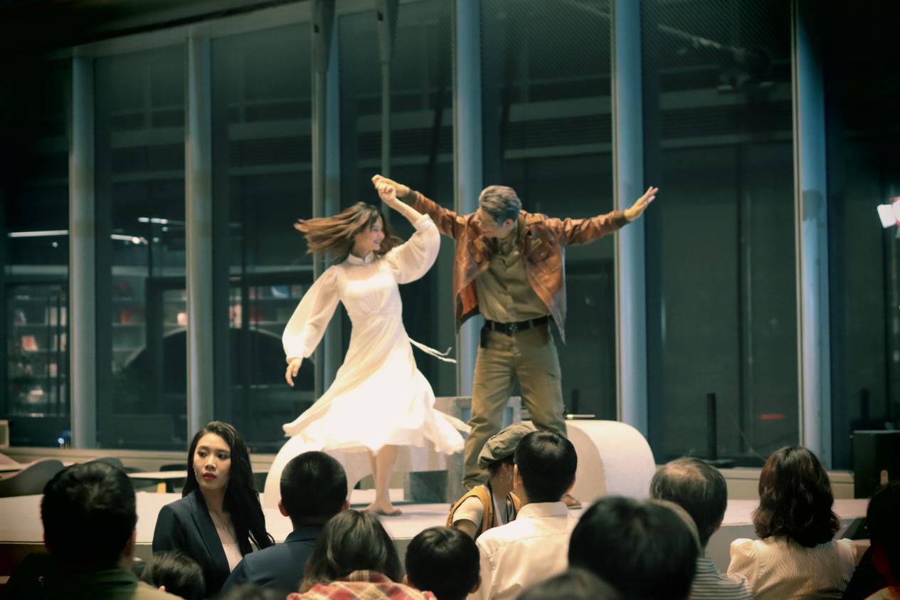 《摩天大楼》导演魏亮老师告诉我们,为了让朵云书院在保留原有功能的同时,成为一个“剧场”,剧组和书院双方携手对空间进行了改造,形成了“日咖夜酒”这种新兴模式:白天书香依旧,入夜则舞台灯光亮起。书院被赋予更丰盈的层次——知识场域与艺术现场在此奇妙共生。